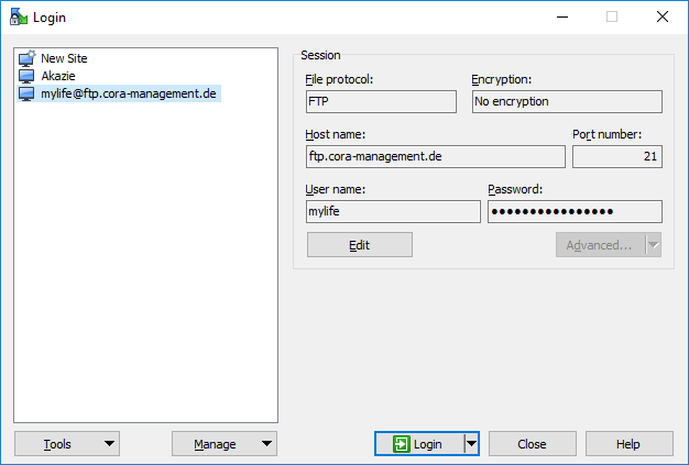 o   Zugang über WinSCP (von Erico zur Verfügung gestellt)